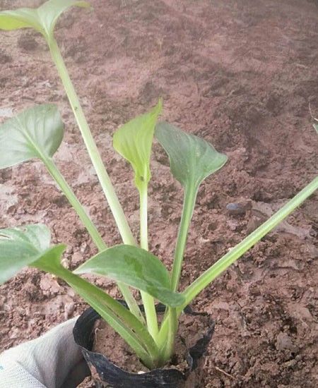 根狀莖粗大,白色,并生有許多須根,株高50厘米~70厘米,葉基生,大型,葉片卵形至心形,有長柄,有多數(shù)平行葉脈。 頂生總狀花序,花梗自葉叢中抽出,高出葉面,有花10朵~15朵,花潔白色或紫色,漏斗狀,有濃香,花期6月~9月。