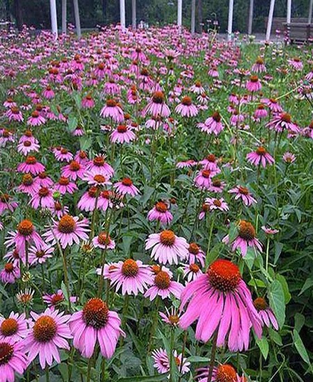 松果菊(學(xué)名:Echinacea purpurea (Linn.) Moench)是菊科松果菊屬植物,多年生草本植物。高50-150厘米,全株有粗毛,莖直立;葉緣具鋸齒?;~卯形或三角形,莖生葉卯狀披針形,葉柄基部略抱莖。頭狀花序,單生或多數(shù)聚生于技頂,花大,直徑可達(dá)10厘米:花的中間部位凸起,呈球形,球上為管狀花,橙黃色;種子淺褐色,外皮硬?;ㄆ谙那?。喜歡光照足、溫暖的氣候條件,適生溫度15-28℃,耐寒,耐干旱,對土壤的要求不嚴(yán),在深厚、肥沃、富含腐殖質(zhì)的土壤中生長。松松果菊花朵大型、花色艷麗、外形美觀,可以作為花境、花壇、坡地的材料,也可作盆栽擺放于庭院、公園和街道綠化等處。松果菊還可作切花的材料。