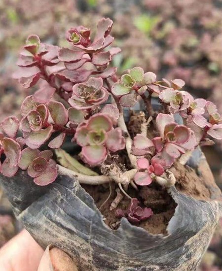 龍血景天是景天科景天屬的多肉植物、也稱多漿植物,比起玫瑰,小球玫瑰有著纖巧的外形。耐寒和耐旱性好,并具有較強(qiáng)的覆蓋能力,在半陰潮濕的環(huán)境下也能生長。氣溫降低后,葉色反而會(huì)鮮艷,紅彤彤的一片討人喜愛。 小球玫瑰平常以綠色為主,日照時(shí)間增加及溫差大會(huì)使整株變?yōu)檠t色,并且株型也會(huì)保持的很漂亮。