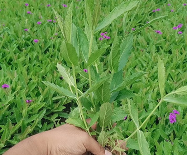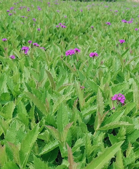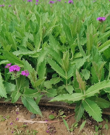 馬鞭草,多年生直立草本植物,高可達120厘米,基部木質(zhì)化,單葉對生,卵形至長卵形,兩面被硬毛,下面脈上的毛尤密。頂生或腋生的穗狀花序,花藍紫色,無柄,花萼膜質(zhì),筒狀,花冠微呈二唇形,花絲短;子房無毛,果包藏于萼內(nèi),小堅果?;ü?-10月。