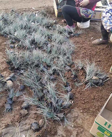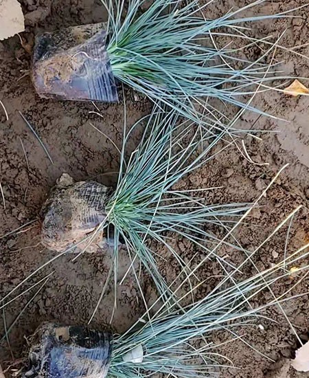 藍(lán)羊茅常綠草本,具有柔軟的針狀葉子,夏季為銀藍(lán)色,冬季會(huì)更綠一些。株高40厘米左右,植株直徑40厘米左右。其蓬徑約為株高的2倍,形成約30厘米高的圓墊。藍(lán)羊茅的葉子直立平滑,葉片強(qiáng)內(nèi)卷幾成針狀或毛發(fā)狀,大多呈藍(lán)色,具銀白霜。藍(lán)色不僅可以保護(hù)葉子免受夏季強(qiáng)烈陽光的傷害,而且可以減少蒸騰作用引起的水分損耗。在冬季,其葉片往往變成土綠色。
