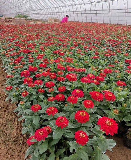 百日菊(學(xué)名:Zinnia elegans Jacq.):一年生草本。莖直立,高30-100厘米,被糙毛或長(zhǎng)硬毛。葉寬卵圓形或長(zhǎng)圓狀橢圓形,兩面粗糙,下面被密的短糙毛,基出三脈。頭狀花序單生枝端,總苞寬鐘狀;總苞片多層,寬卵形或卵狀橢圓形。舌狀花深紅色、玫瑰色、紫堇色或白色,舌片倒卵圓形,先端2-3齒裂或全緣,上面被短毛,下面被長(zhǎng)柔毛。管狀花黃色或橙色,先端裂片卵狀披針形,上面被黃褐色密茸毛。雌花瘦果倒卵圓形,管狀花瘦果倒卵狀楔形。花期6-9月,果期7-10月。